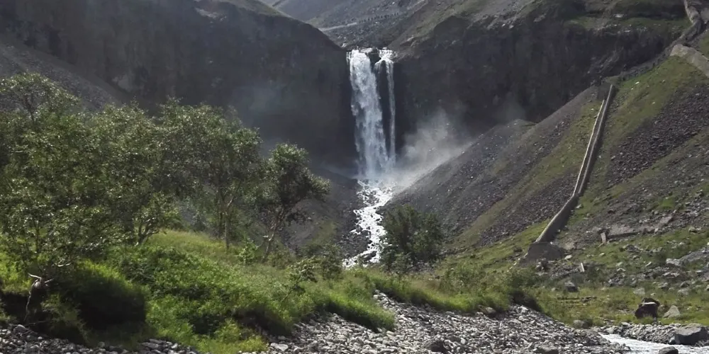 則評價長白山天池北面有一個小缺口,湖水由此溢出一瀉而下,形成了長白瀑布,匯入二道白河,即松花江正源。站在瀑布前的觀景台遠觀瀑布,只見水流好像從天而降。由於山大坡陡,水勢湍急,瀑布像一架斜立的天梯。瀑布口有一巨石叫“牛郎渡”,將瀑布分為兩股。兩條玉龍似的水柱勇猛的撲向突起的石灘,沖向深深的谷地,濺起幾丈高的飛浪,水氣瀰漫好似霧氣。