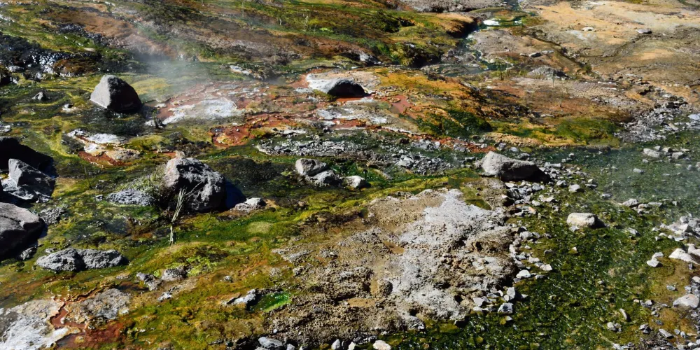 聚龍泉位於長白山自然保護區北坡景區內,是長白山溫泉群中水量較大、分佈較廣、水溫較高的溫泉。在長白瀑布下方,這些溫泉口遍布山體,形成壯觀的地熱景象。遊客可行走在棧道上,從各個角度欣賞這五顏六色的溫泉帶,還可以品嚐用溫泉水煮的鮮嫩雞蛋。