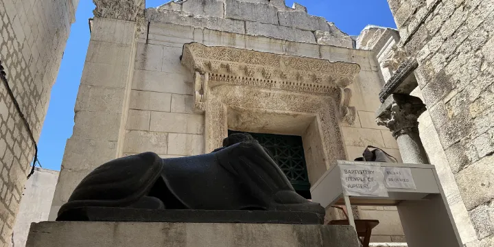 朱庇特神廟位於克羅埃西亞斯普利特,是一座保存完好的古羅馬建築,展示了古代宗教建築的精美工藝。神廟以其獨特的建築風格和歷史價值吸引著許多遊客。神殿的入口處有一座保存完好的石雕門楣,上面刻有精美的裝飾圖案,展示了古羅馬時期的藝術風格。