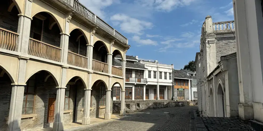 影視小鎮位於都勻經濟開發區洛邦工業園附近,是在原113兵工廠舊廠房的基礎上進行改造而成,佔地面積1700多畝,是集民國時期軍事題材影視劇拍攝、民國風情旅遊、愛國主義教育基地為一體的旅遊小鎮。