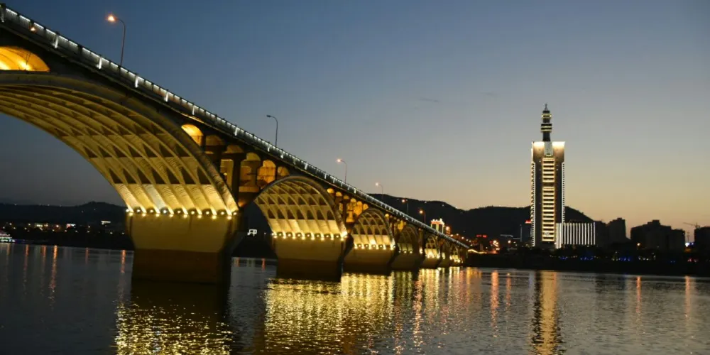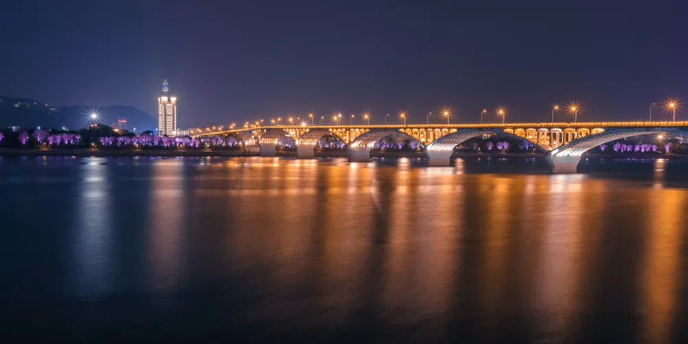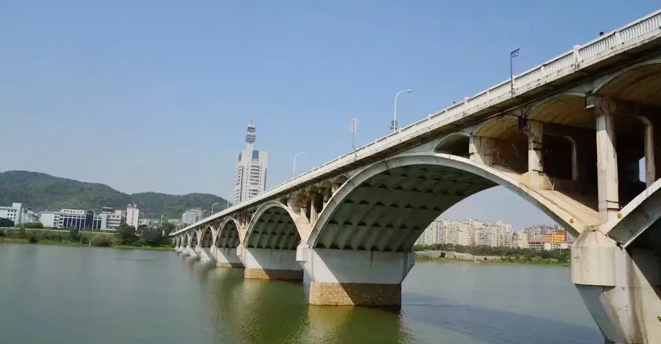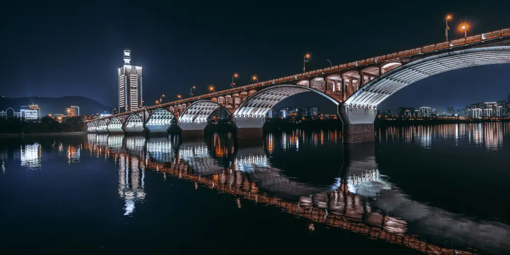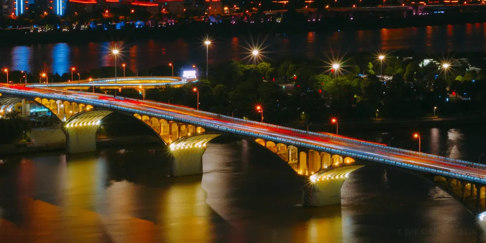 橘子洲大橋,連接著長沙市中心、湘江的橘子洲和江對岸的岳麓區。大橋有支橋,可以直接到達橘子洲公園。在橘子洲公園看橫跨湘江的大橋,一個個石拱,很有氣勢,大橋的岸邊,還能看到色彩艷麗的塗鴉,景色優美讓人驚嘆。