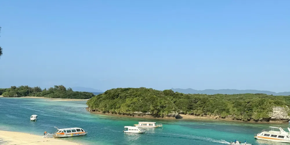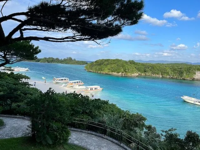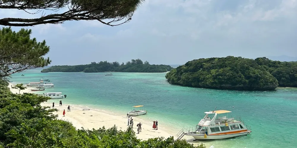 川平灣是西表石垣國立公園的一部分,也是石垣島的著名景點,白色的沙灘,藍色的大海,清澈而寧靜,是潛水愛好者的天堂。海面下非常多種類的珊瑚。在珊瑚周圍,生活著各式各樣的熱帶魚,可以坐玻璃船出海看珊瑚和魚。
