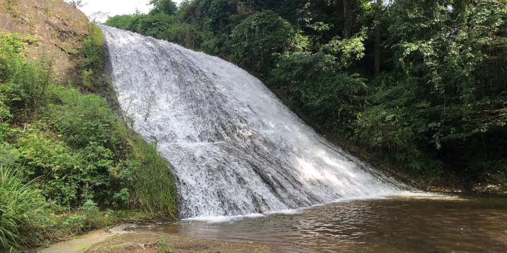 這是一個很獨特的瀑布,瀑布全長20米,其形狀類似於頭盔,因此而得名。