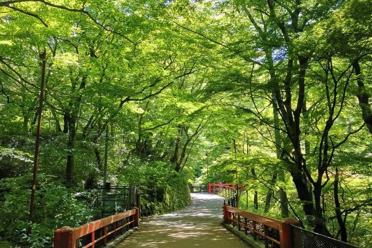 在山門等參拜道兩旁有很多賣“水澤寬麵條”的麵條店,是這裡的一大特色。