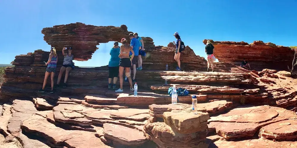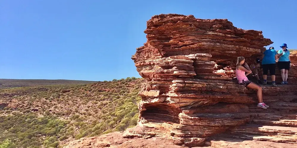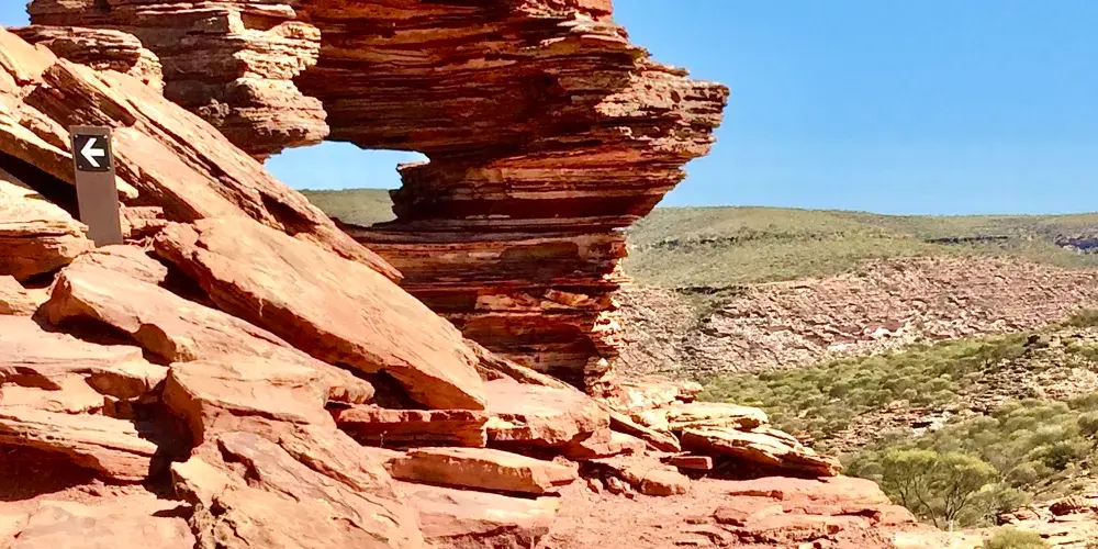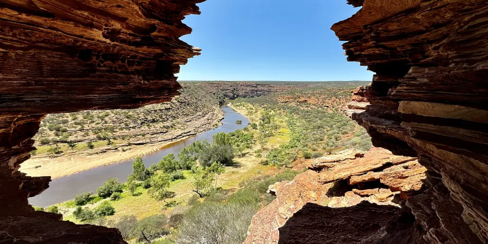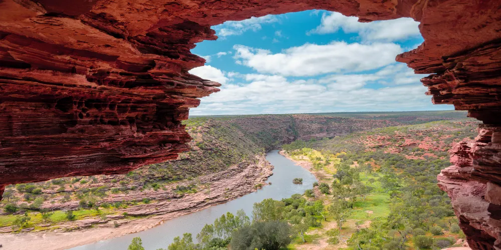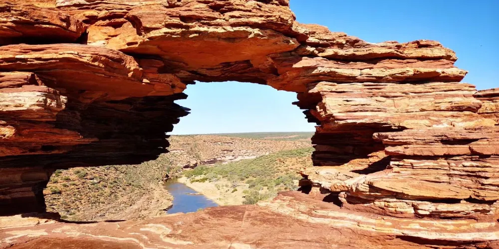 超過18萬公頃的內陸冒險樂園裡,奇詭險峻的峽谷、燦爛的野花和標誌性的奇特景點自然之窗(Nature’sWindow)讓卡爾巴里國家公園成為了西澳盛名遠揚的經典必備遊覽勝地。去叢林裏、峽谷間徒步,或者到穆爾其森河(MurchisonRiver)上劃獨木舟,開啟一場4億年的時光之旅,那時古老海洋的灘塗形成了如今醒目的銹紅色砂巖,自然的力量雕刻出了深邃、奇詭的海岸線。除了把周邊的自然景色框成美麗畫幅的自然之窗,圈崖(TheLoop)、Z字彎崖(ZBend)、羅斯格蘭姆崖(RossGraham)、紅崖(RedBluff)和壺徑(PotAlley)等都是不容錯過的打卡點,可通過瞭望台觀賞壯麗景色。7月到10月期間,1100多種野花讓這片粗獷的土地染上柔美的春日色彩。卡爾巴里國家公園位於珀斯以北590公里處,大概需要開6小時的車。需要注意:這裏令人歎為觀止的地質奇景是千萬年來不斷侵蝕、生長演變而來的不可再生資源,為了安全考慮和保護景觀的目的,請不要隨意攀爬或作出懸掛等危險動作哦!