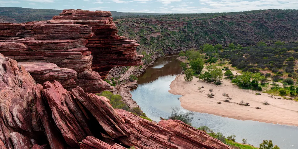TheLoopandZBendGorge是莫奇森河(MurchisonRiver)的一部分;顧名思義,峽谷裏有無數的環道和Z型彎道穿梭其間。這裏位於卡爾巴里國家公園,從谷頂的瞭望台極目遠眺,美不勝收的景色便盡收眼底。您可以一邊欣賞美景,一邊享用野餐或燒烤大餐,給您提供大部分免費的燒烤設備。