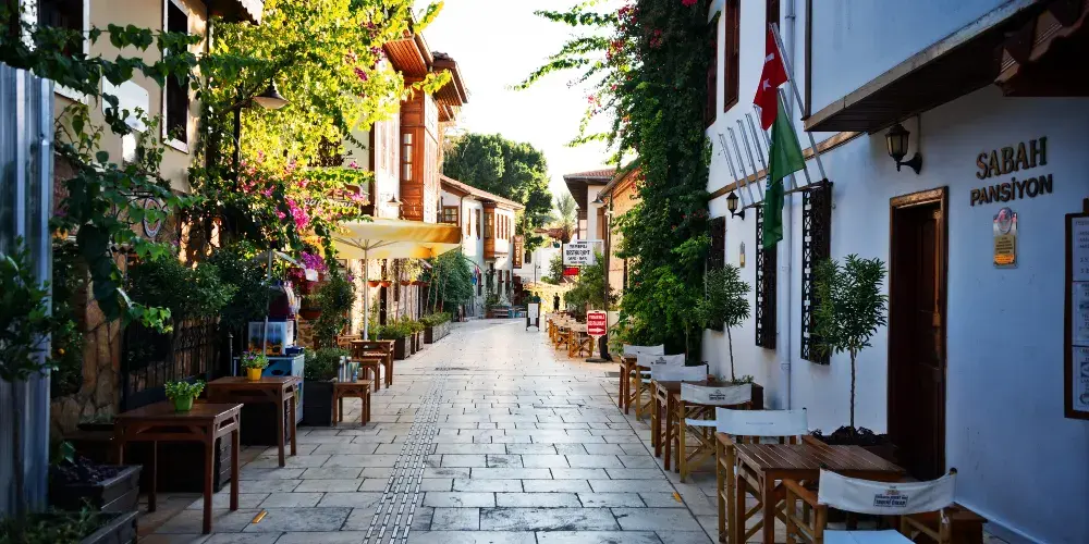 街區內紅頂白牆的奧斯曼風格石屋錯落分佈,還有17世紀的Tekeli Mehmet Pasha清真寺、1244年建成的五邊形鐘樓等特色建築。此外,這裡餐廳、咖啡館林立,遊客可品嚐地中海烤魚等美食,還能在商店裡淘到地毯、陶瓷等手信,感受傳統市集的煙火氣。