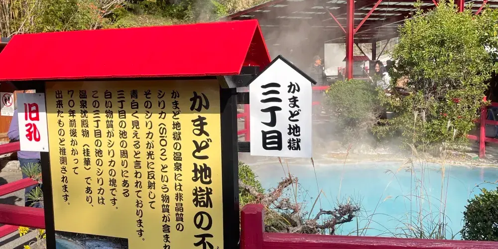 如果沒時間逛完所有地獄溫泉,推薦來“灶地獄”一次看個夠,因為這裡同時擁有六種地獄景觀!除了迷你版血池、白池、鬼石坊主地獄外,其中最漂亮的一個,呈tiffany藍的溫泉水在一天之中會有不同的顏色變化,配上湖面嫋嫋升起的熱氣,異常迷人。