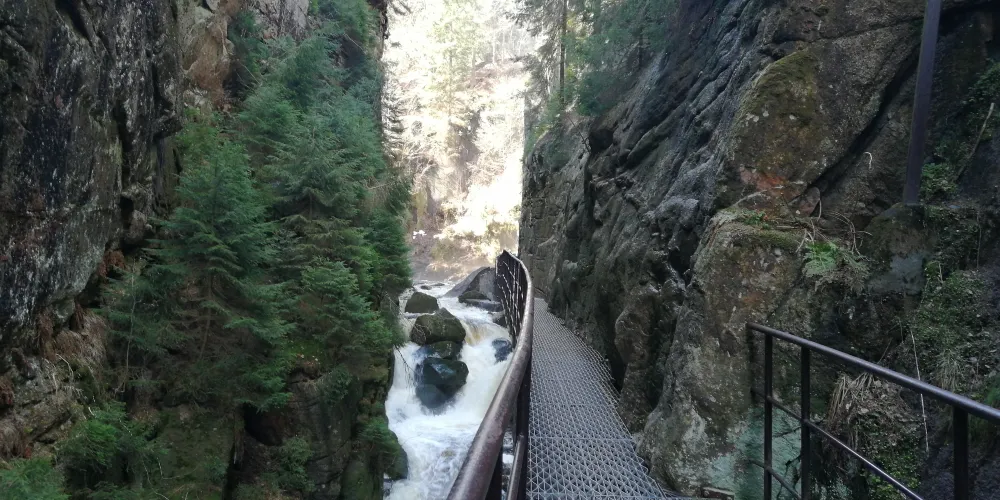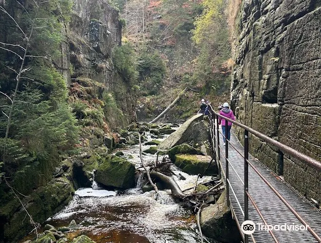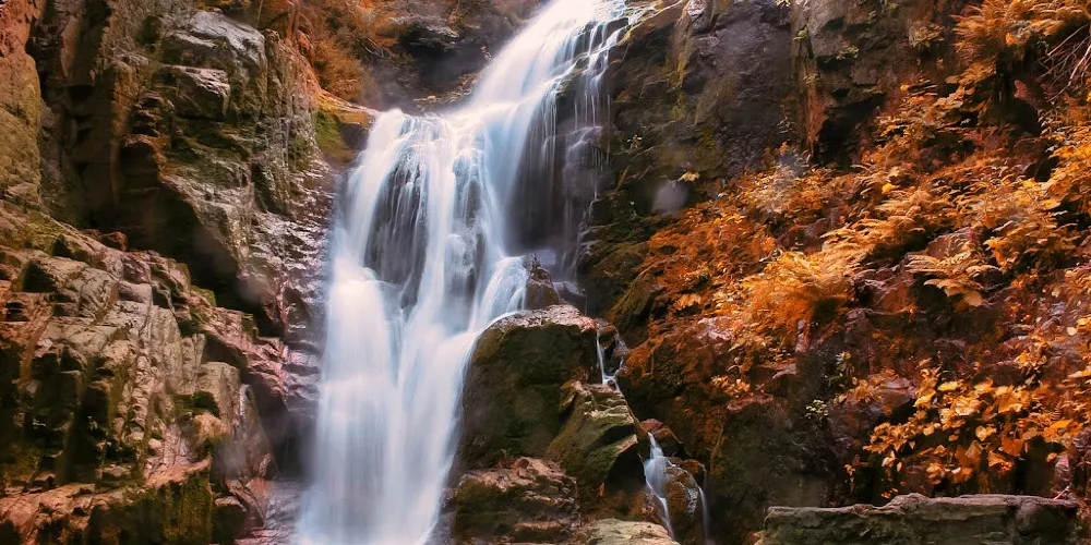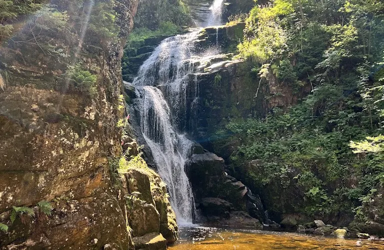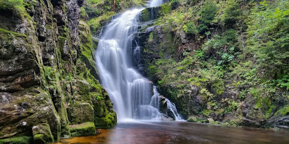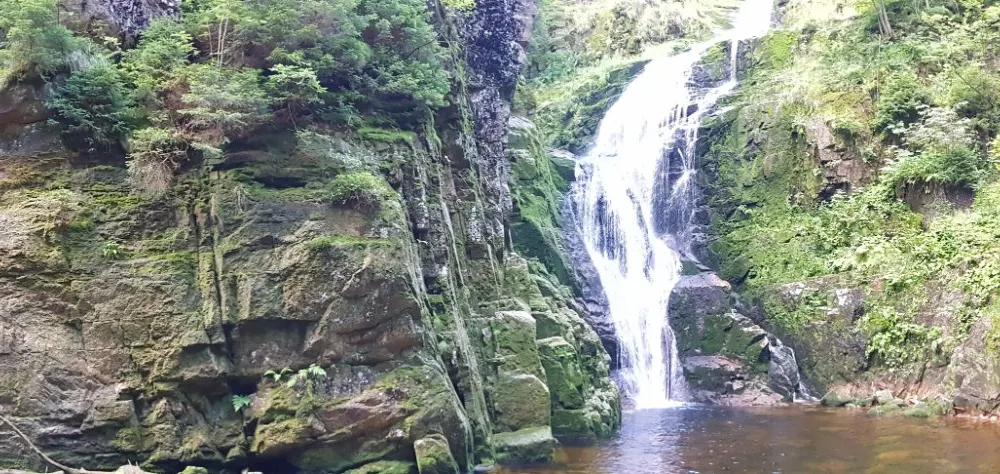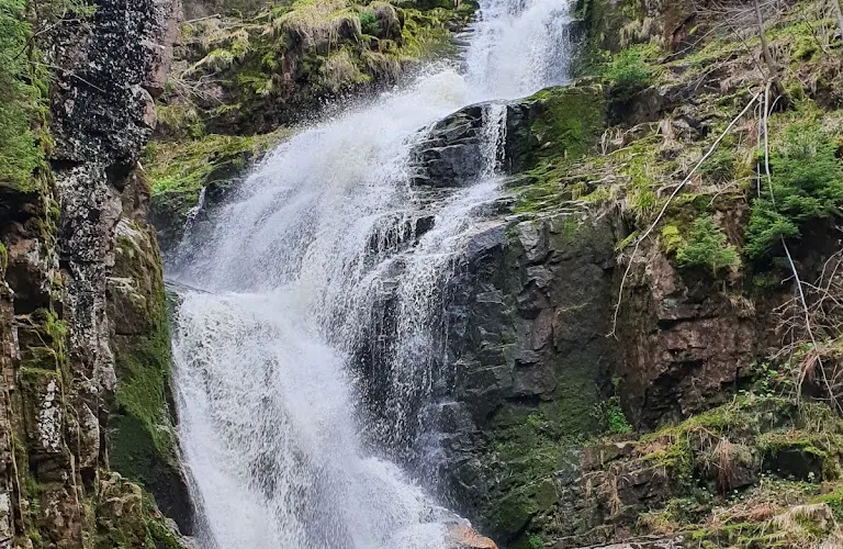 Szklarki Waterfall藏身於山巒環抱的峽谷之中,是個飽含自然魅力的瀑布勝地。溪流在幽深的森林中跌落,水聲迴盪在岩壁之間,週邊的山林、樹木與岩石共同編織出一幅靜謐又富有力量的山野畫卷。
