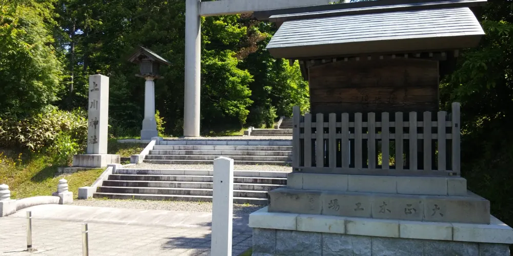上川神社位於北海道旭川市神樂岡公園內,1920年設立了神社本宮與別院神社,1936年完成了106級台階的建設,其餘鳥居,燈籠,守護犬等,由公眾教友的奉獻基金所建立。