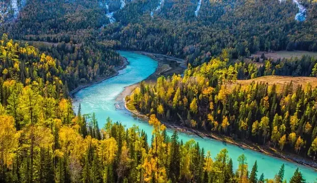喀納斯河位於喀納斯景區內,是布爾津河的主要支流,河的上源就是世界上最美麗的湖泊——喀納斯湖。喀納斯湖的湖水傾瀉而下,在山穀中蜿蜒,形成了臥龍灣、月亮灣等秀麗絕倫的水灣河灘。