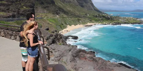 則評價鑽石頭山位於夏威夷檀香山市,它是一座死火山,也是夏威夷的象徵。它像一條臥龍臥在威基基海灘不遠處,在海灘上可以遠眺鑽石頭山。鑽石頭山有條登山步道已有百年曆史,剛開始是水泥路段,較為平穩,中間一段是土路。步道兩旁植被蔥鬱,走到半山腰,便能看到遠處的太平洋。