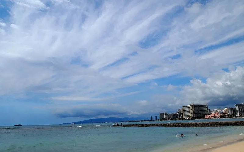 則評價威基基海灘是夏威夷檀香山市的人氣海灘,是著名的度假勝地。其中精華的部分是從麗晶飯店到亞斯頓威基基海濱飯店之間的一段。這裡有細緻潔白的沙灘、茂盛的椰子樹以及林立的高樓大廈、海水寧靜開闊,你可以潛水、衝浪、劃皮艇,在海灘上享受陽光浴,或在夕陽西下時沿著沙灘散步,欣賞落日的壯麗景象。海灘的夜晚特別熱鬧,周圍滿是餐廳、酒吧,喝著雞尾酒,欣賞夏威夷特色的草裙舞。