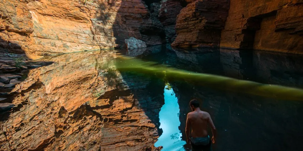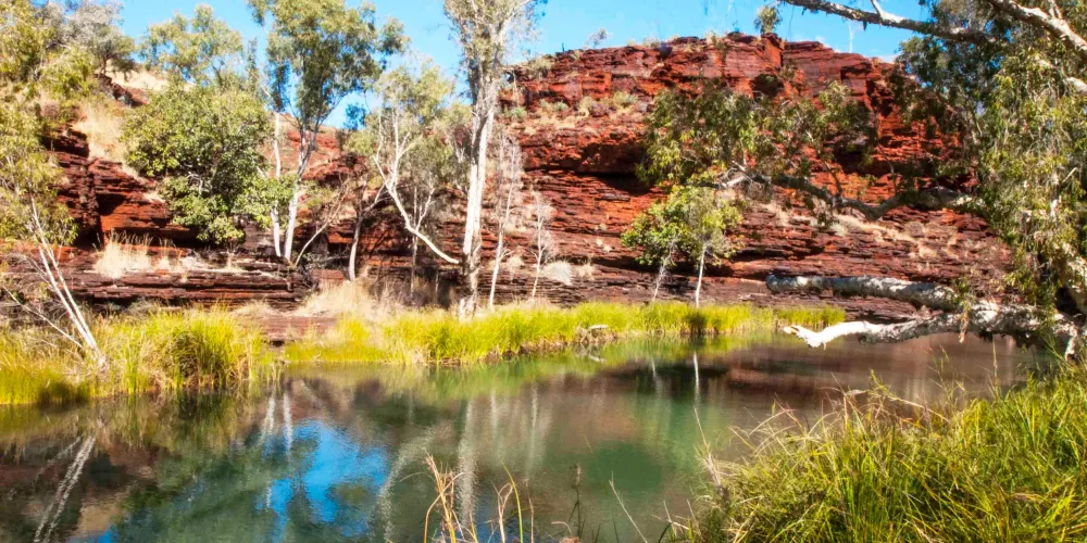 是西澳大利亞第二大國家公園,也是冒險户外咖的“夢之目的地”——地球花費了20多億年打造的卡瑞吉尼國家公園,巨大的山脈和峭壁平地而起,令人屏息的峽谷將高原分割,或佈滿石頭或綠樹成蔭的水道蜿蜒穿過塵土飛揚的平原。你可以登上瞭望觀景台,通過我們為你選定的上乘視角環顧。不管是徒步新手、户外大咖、青年、長者或行動不便的人士,不同難度等級的徒步道,不會讓任何人錯過國家公園內的美景。喜歡玩水的,會流連於這裏清澈的水池,設備完善的野餐區和指定露營地能幫助你融入自然,記得提前到國家公園的官網預約你的營地。推薦打卡戴爾斯峽谷(DalesGorge)、福斯克瀑布(FortescueFalls)和OxersLookout觀景台。從紐曼(Newman)鎮上出發,大約2小時能抵達這裏。除了自助安排行程,也推薦你加入合適自己的四輪驅動車團體遊,或是由當地旅行社組織的體驗遊,有的行程會直接把你從珀斯帶到卡瑞吉尼。