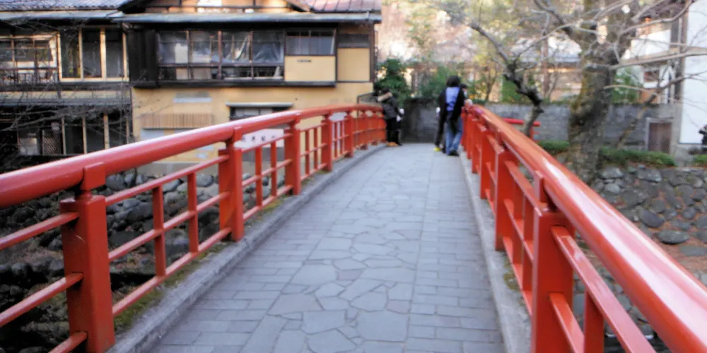 小橋環境曲徑通幽,在周邊的楓葉襯託下猶如世外桃源一般,附近還有寺廟可觀賞。