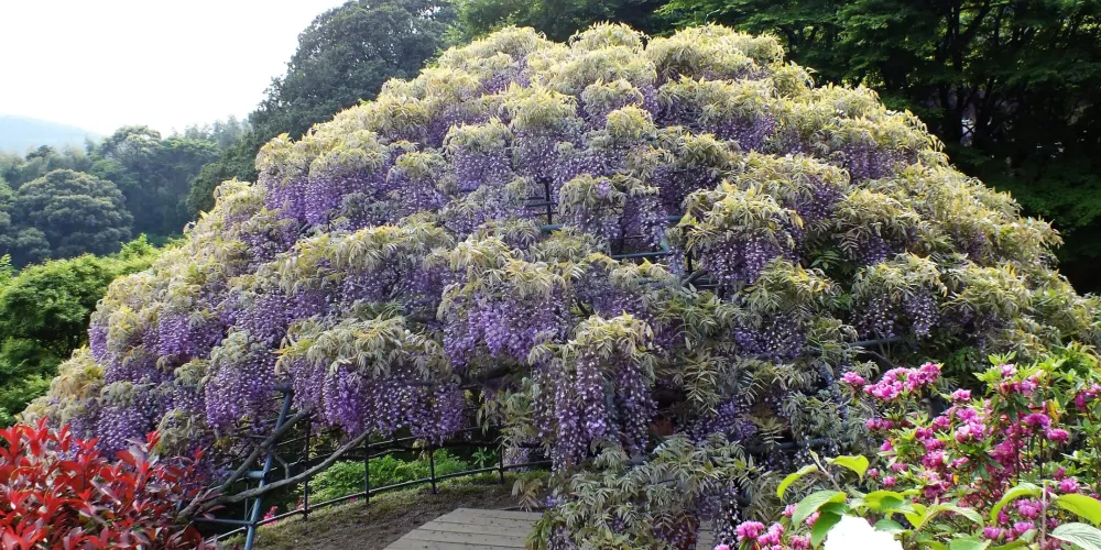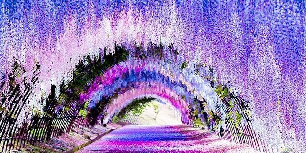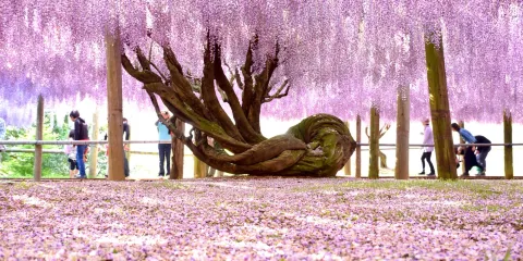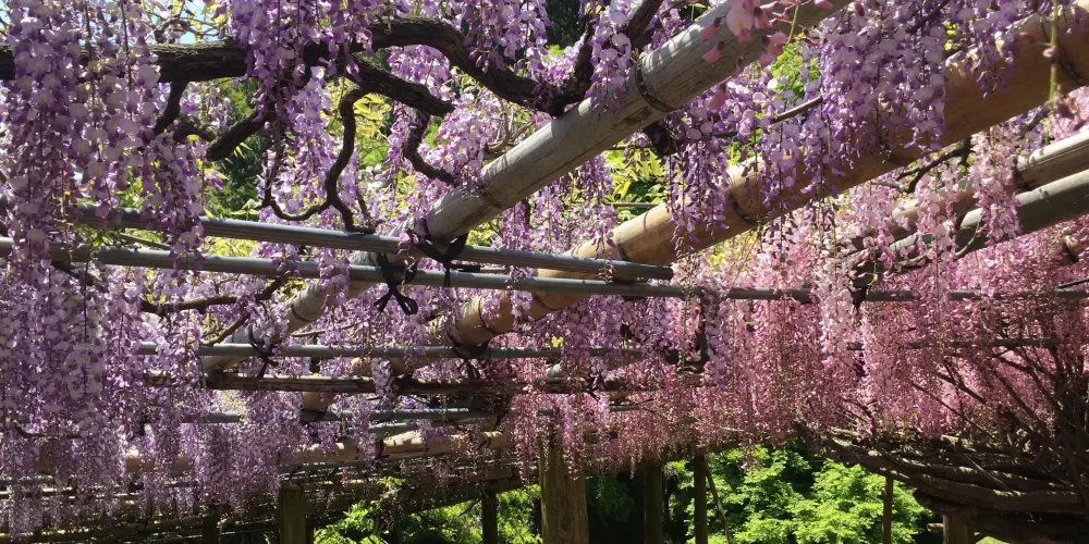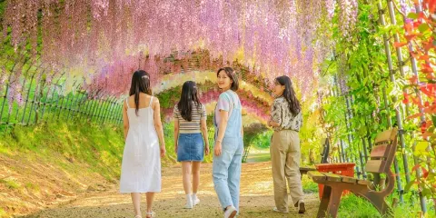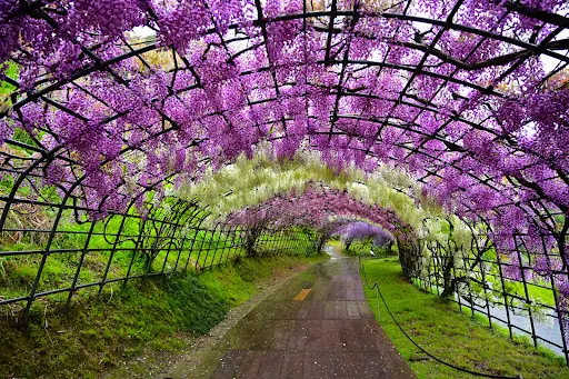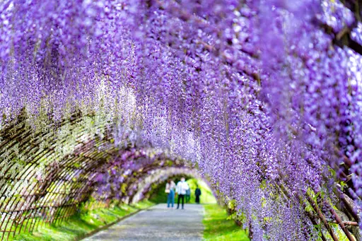 河內藤園位於九州市福岡縣,有著大面積的大藤架,還有令人陶醉的紫藤圓屋頂及紫藤隧道。園內共有二十多種、共計上百株紫藤樹,如野田長藤、口紅藤等,有的樹齡達百年以上,形態各異。這個花園很不一般,是私人花園,主人不願意對大量遊客開放,只供喜歡藤花的人欣賞,不做一切宣傳行為。