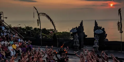 讓烏魯瓦圖熱鬧的 Kecak 火舞點亮您的夜晚!如果去峇裡島旅遊,烏魯瓦圖寺是必去的地方,其中一大亮點就是晚上舉行的Kecak火舞表演。