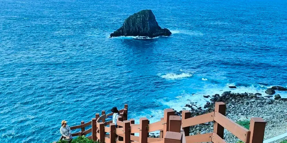 海蝕平台:廣闊的海蝕平台是冬季海藻的產地,時常可見成群結隊的當地村婦前來採集天然海菜,形成島上一道獨特的人文風景。