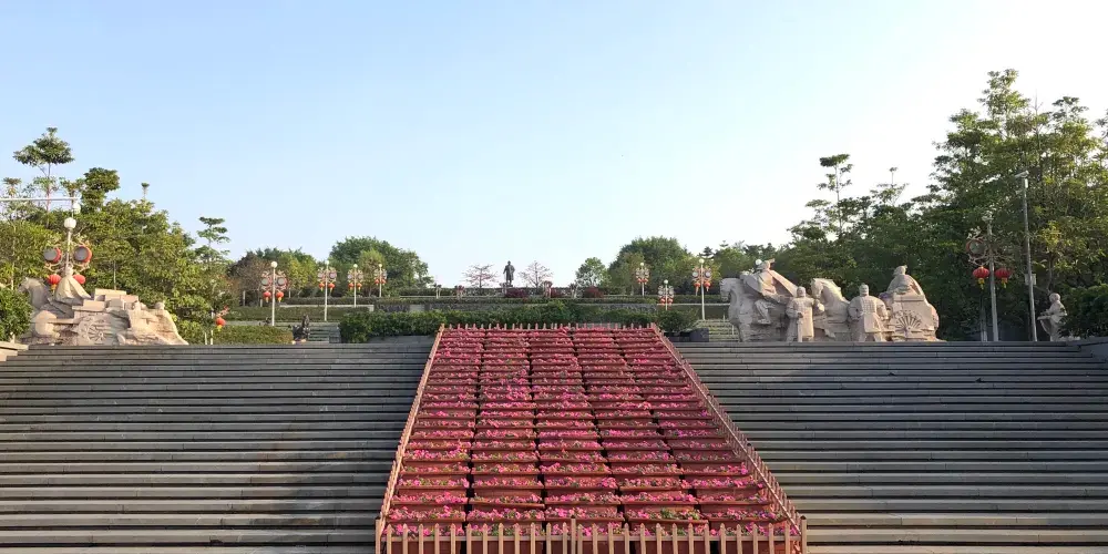 客家文化公園-西門廣場位於河源中心城區,客家文化公園依山而建,建地面積廣,生態環境良好。其中西門廣場面積開闊,有很多民俗雕像,廣場邊還有假山瀑布,景緻別緻,環境優美。