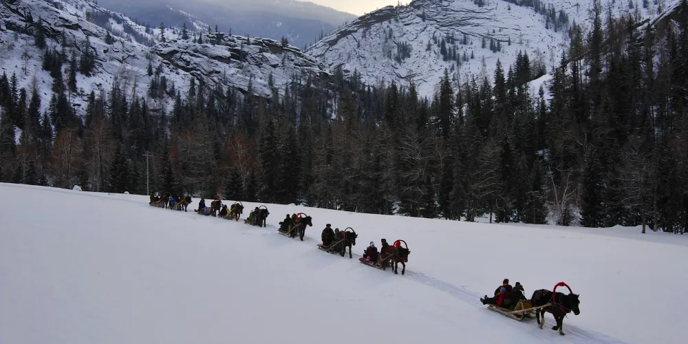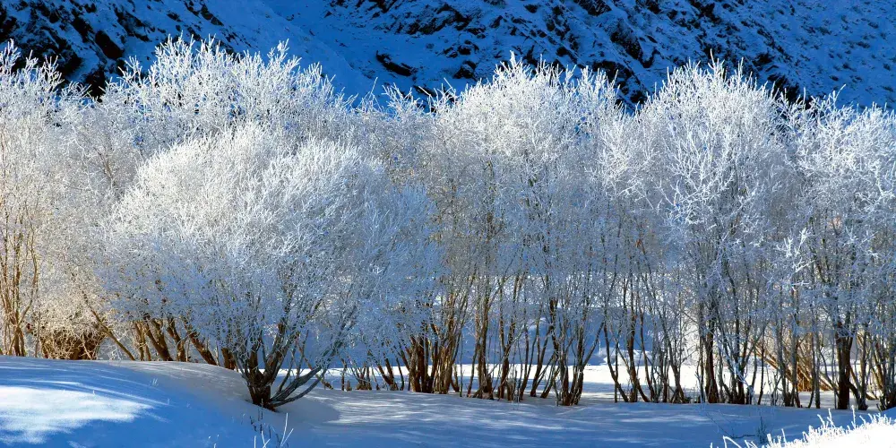 位於景區門口不遠處的白樺林和石門停車處附近的紅葉溝都非常適合秋天觀賞,樹葉或金黃或火紅,都十分絢爛,秋天時林子背後的山峰也都開始積雪,好像美麗的雪山。此時樹葉、河流和雪山相映,正是拍攝大片的好時機。