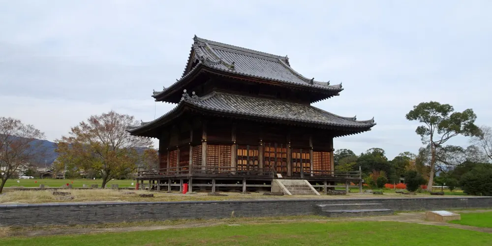 根來寺位於和歌山縣那賀郡巖出町,是新義真言宗總本山寺院,開基(創立者)為興教大師覺鑁。寺院內古老的重要珍貴文化遺產是“大師堂”,據傳建造於1391年。在中世伽藍建築當中,它作為南北朝時代的遺跡是非常珍貴的建築。在堂內供奉真言宗開祖弘法大師空海的塑像,與須彌壇一樣是日本的重要珍貴文化遺產。大師堂旁是日本國寶根本大塔,它是座高40米、五間的木造多寶塔,是日本國內大型的木塔。大塔外牆身壁麪仍可見當年秀吉討伐根來時留下的火銃彈窟窿。寺內除大塔與大師堂以外的建築物則修建於江户時代(1603-1867),有例如常光明真言殿等建築。
