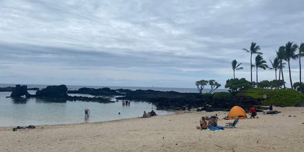 海灘位於科納,遊人較少。所以有着得天獨厚的優美環境,這裡是潛水和浮潛活動的天堂,海底的景色非常美麗。