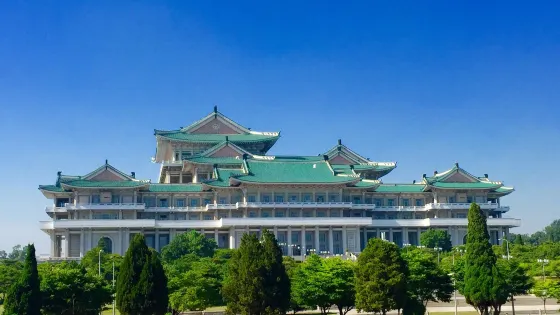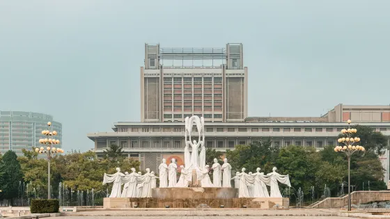 金日成廣場,是平壤市中心萬壽台山崗上大廣場,是舉辦慶典和紀念活動的中心場所,廣場建於1972年4月金日成60壽辰之際。廣場上以巨大的金日成銅像為中心,兩側是紅旗下的群像雕塑,後方是朝鮮革命博物館,博物館牆上則是白頭山的大幅鑲嵌壁畫。每逢紀念日到萬壽台來集體獻花的群眾隊伍絡繹不絕。