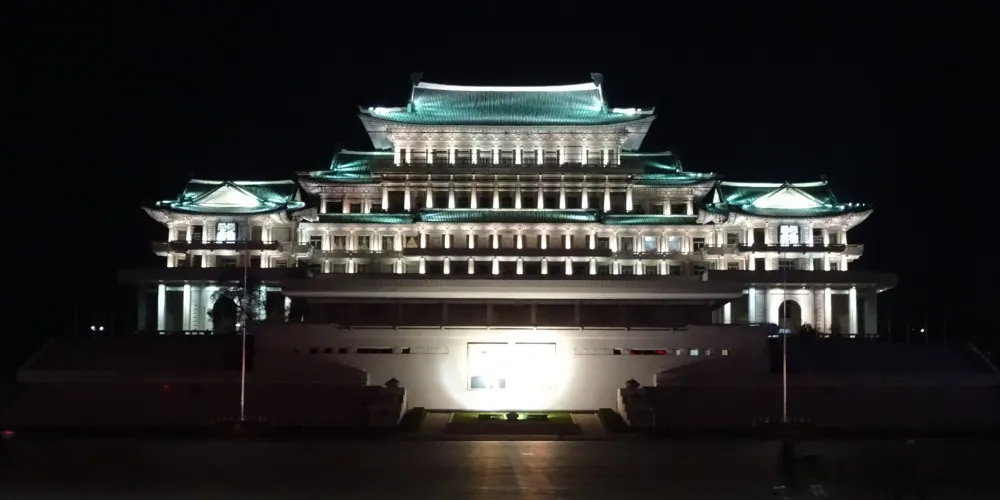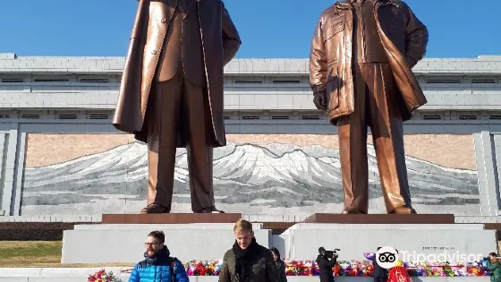 金日成是朝鮮人民尊重的主席,在三五人高的金日成廣場銅像前,時不時會有虔誠的朝鮮人民,恭敬地走上前,深鞠一躬,會中文的地陪小姐說,當地人每天上班前到此是家常便飯,每逢空閒,人們還會不約而同地就近便到有金日就到此社區進行成清雕像。