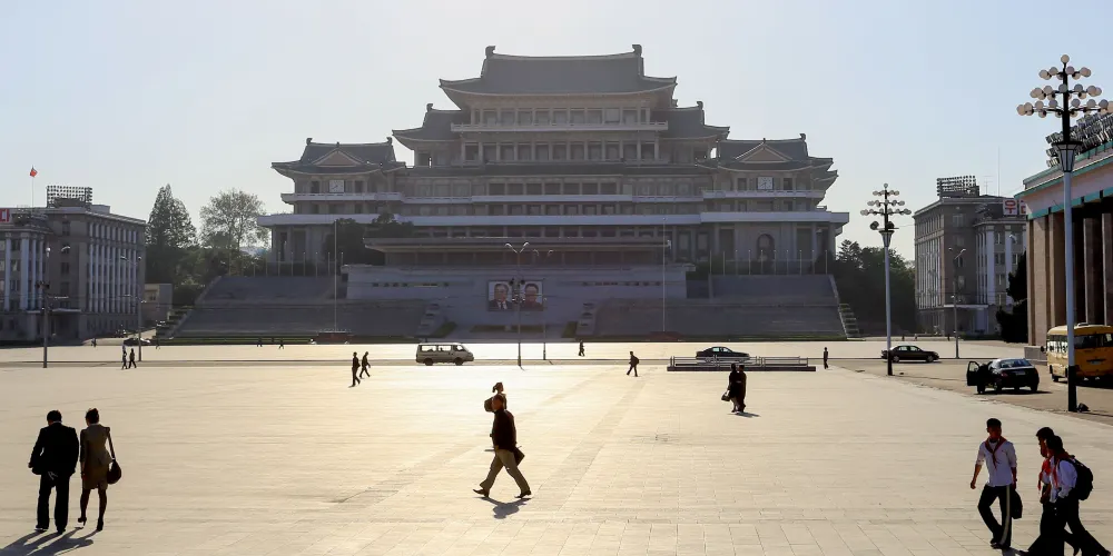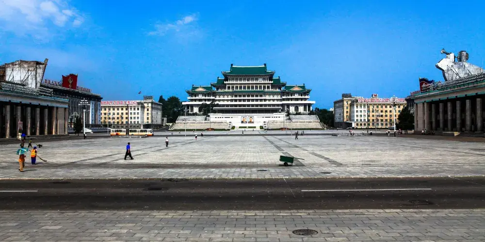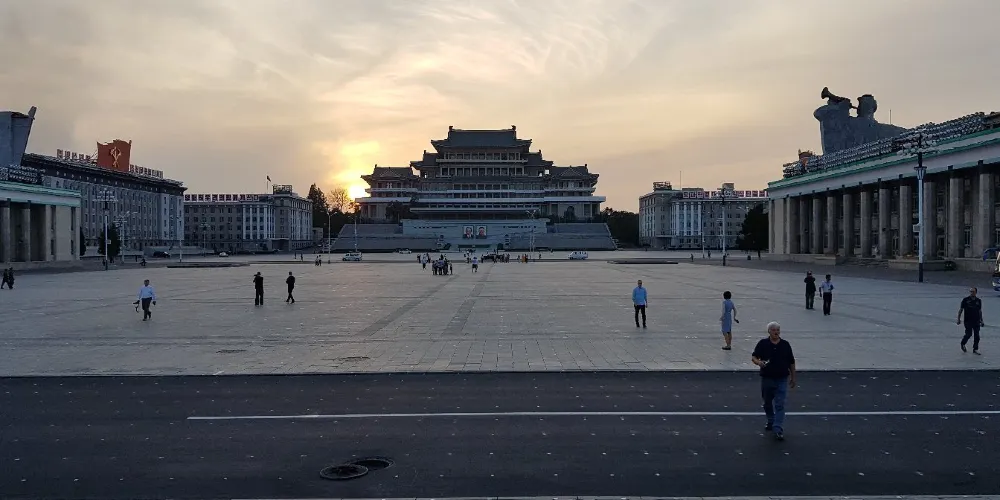 金日成廣場是首都的中央廣場,1954年8月完工,面積75,000平方米,地面是花崗岩鋪地。這裡是北韓舉行重要政治文化活動、慶祝大會、公眾集會、閱兵式的場所。金日成廣場的南北分別是主體思想塔與人民大學習堂。