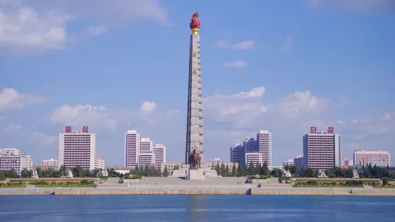 主體思想塔位於平壤市中心大同江畔,塔高170米,塔身分70節,由25550塊花崗岩砌成,象徵著金日成主席70壽辰和70年天數的總和。