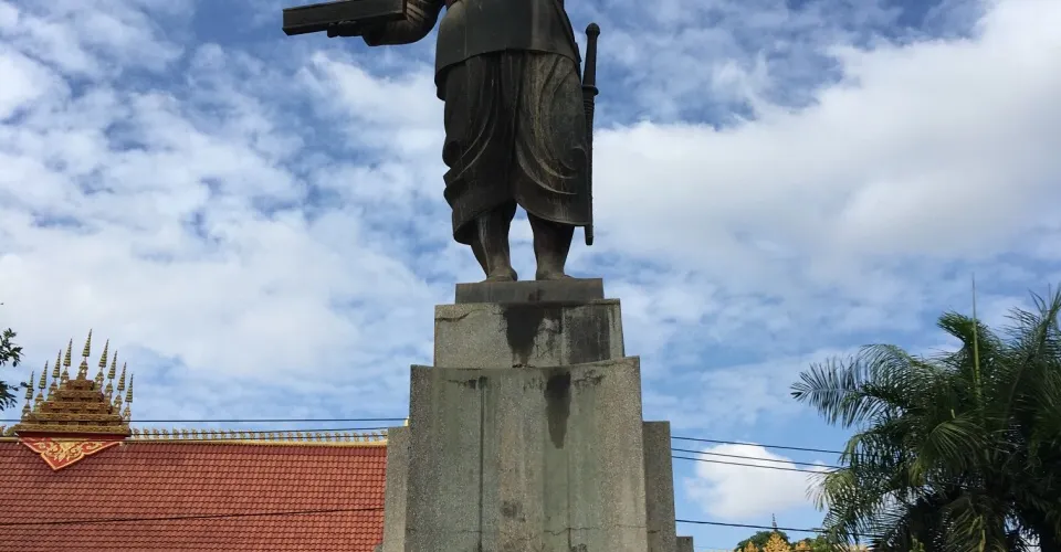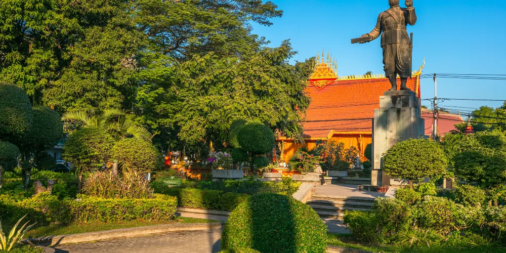 西裡薩旺翁國王雕像位於寮國永珍西蒙寺東邊,條主幹路交匯之處。雕像周邊是一個小公園,環境清幽,很適合散步。
