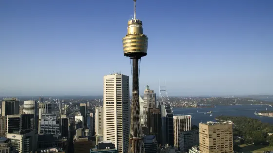 悉尼塔建成於1981年,和悉尼歌劇院、悉尼海港大橋並稱為悉尼三大地標性建築。悉尼塔樓高300米,由56根每根重達7噸的巨纜支撐,展望台離地高度為250米,360度透明觀景台使所有景觀一覽無遺。藉助高倍望遠鏡,可以把周圍70公里內的景物盡收眼底。在位於悉尼塔頂端,你還可以在距離地面260米的玻璃底觀景平台行走,非常刺激。