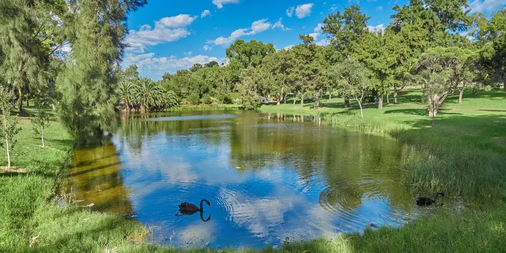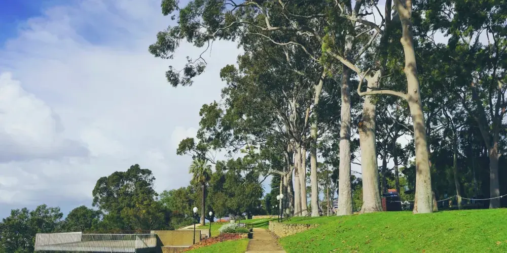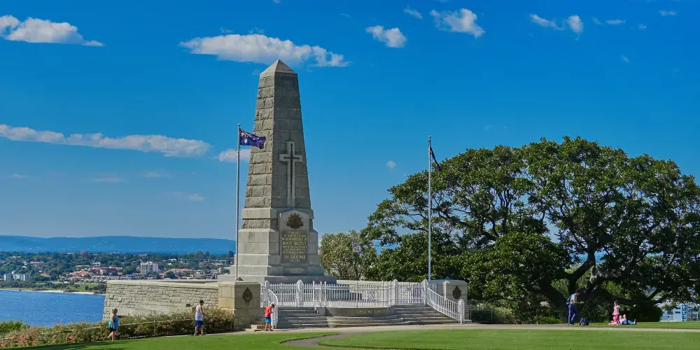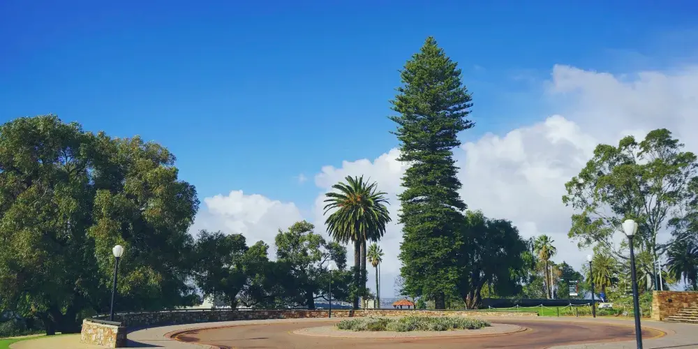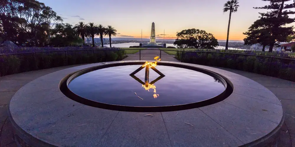 國王公園地處珀斯市區以西,是南半球的一座城市公園。這里地勢較高,可以俯瞰到整個珀斯和天鵝河的美景,是珀斯市民喜愛的自然休憩場所。很久以前,國王公園是澳大利亞土著人重要的聚集場所,公園內還有一個土著文化藝術館可以參觀。除此之外,公園內還有一座州立戰爭紀念碑,用來紀念在兩次世界大戰中喪生的軍人,廣場上的永恆之火,則是悼念為國捐軀而客死異死的亡魂。