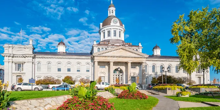 金斯頓市政廳建於1844年,是一座石灰岩建築,是加拿大非常古老的市政廳,也是金斯頓的地標。其新古典主義風格展現了19世紀中期的建築美學,吸引了許多遊客前來參觀。市政廳不僅是金斯頓市政府的辦公地點,也是舉辦各種公共活動和展覽的場所。