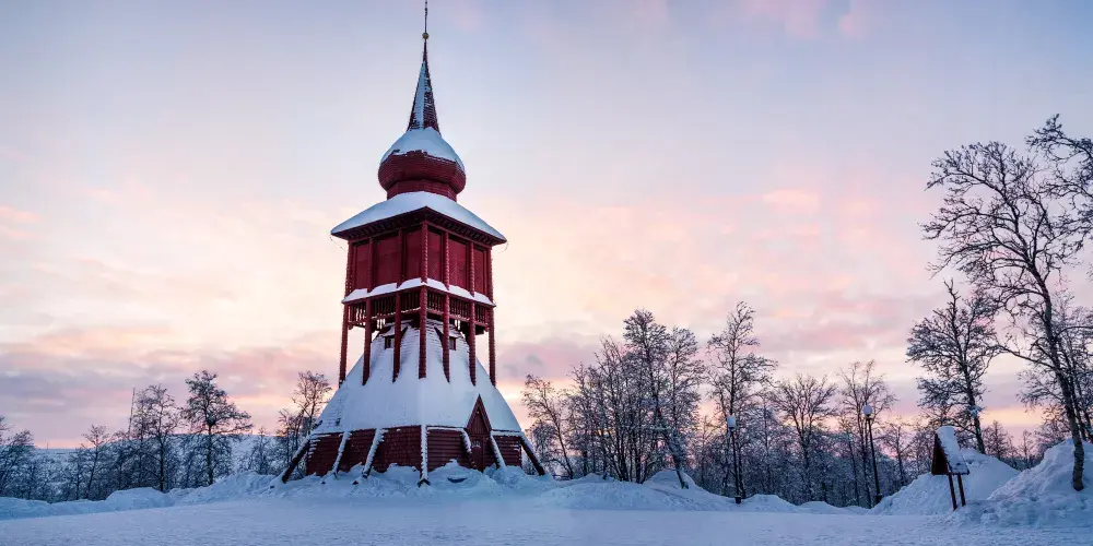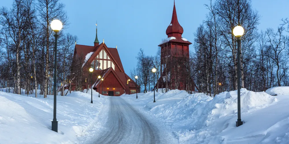 基律納大教堂並不是一座特別大的教堂,但它卻是瑞典一座獨特的全木式建築教堂,在冰雪的覆蓋下,教堂彷彿童話中的建築一般。