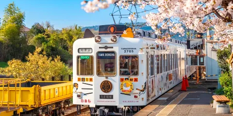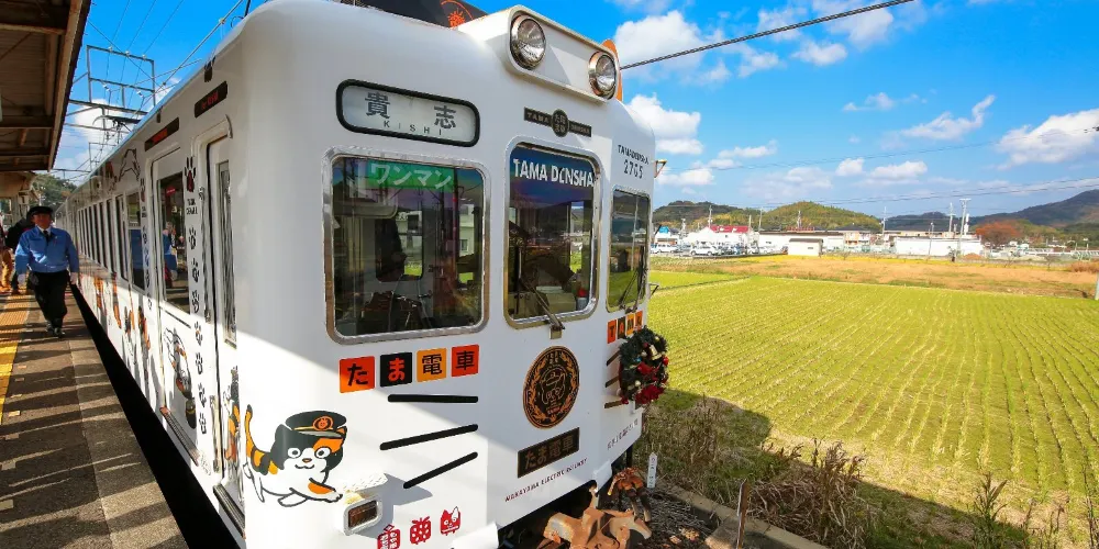 2010年,和歌山電鐵公司請設計師把貴志車站設計成一個笑瞇瞇的貓臉,並量身打造了一款型獨特的小玉電車。小玉電車很像遊樂園裡的遊覽車,車頭是貓咪的形狀,車廂外側有101個很「卡哇伊」的小貓彩繪。因為小玉是三色貓,所以車廂地板也有3種顏色,而且小貓的腳印像花瓣似的散落一地。