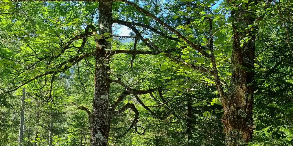 魔法森林位於德國境內與奧地利接壤的邊境小鎮貝希特斯加登的拉姆紹地區,佔地面積約0.75平方公裡。如今可以通過徒步旅遊穿越該森林,一路溪水長流鳥語花香,適合漫步。而魔法森林於19世紀20-30年代得名,並因其滑坡景色、森林和溪流營造出的浪漫氣氛而被稱為魔法森林,後來逐漸發展成為著名旅遊風光景點。該處一年四季風景各異,春天處處綻綠,山花怒放,令人不忍離去;夏天則藍天白雲,綠水清波;秋天有漫山紅葉,朝霧晚霞 ;冬天銀裝素裹,還有各處雪地可供滑雪。