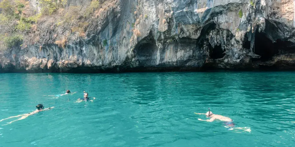 卡拉丹島的海水水質非常的好,水下能見度非常高,是董裡著名的浮潛地點,熱門程度不如穆島(Koh Muk),遊客相對比較少,也比較安靜些。在這裡浮潛,可以看到各種魚類,還有珊瑚。