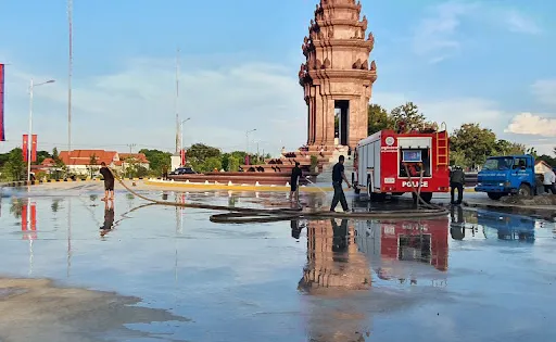 NokorWat是一座吳哥式寺廟,始建於11世紀,毗鄰鄭和廟。整座寺廟有完整的吳哥式建築元素,有一些紅色高棉時期遇難者的頭骨可以參觀。在廟內可以看到一些壁畫,形象生動的描繪了宗教中的懲戒與刑罰以及昇天後的美妙。如果天氣好那麼這裏的日落是不容錯過的,夕陽西下,十分美麗。