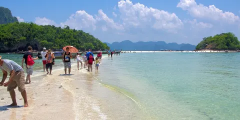 塔島和莫島距離很近,每到月中退潮的時候,兩個島之間會露出一條沙灘路,可以走到對面的島。這裡還被泰國國家旅遊局評為安達曼海上之泰奇觀。這特殊的景象不僅吸引大批觀光客前來,也是電影《割喉島》中,女主角騎馬破浪而出的地方。