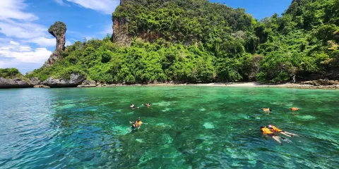 帕南海灘位於安達曼海岸萊利島的南端,是泰國十大最美的海灘之一。它四面環繞著石灰岩的懸崖,擁有翡翠般清澈的海水和美麗的白色沙灘,沙灘的沙子十分綿密,如同麵粉一般。這裡著名的除了女神洞之外還有海邊倒掛的岩石,是一處攀岩的好地方。這裡需乘船前往,島上人很多,很是熱鬧。