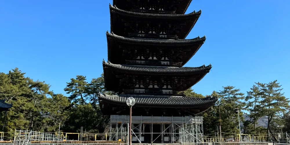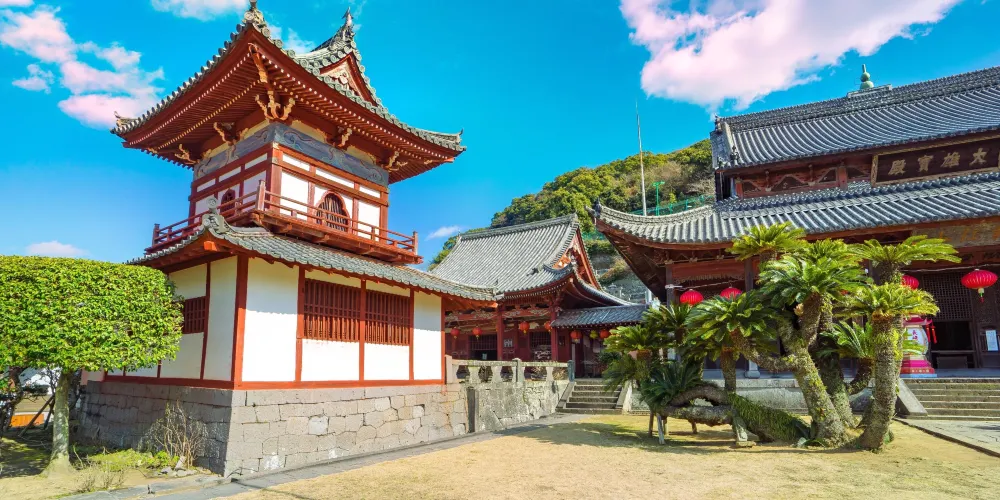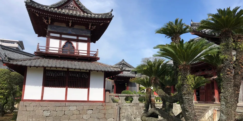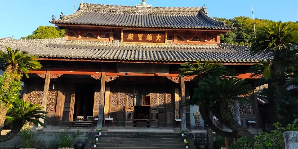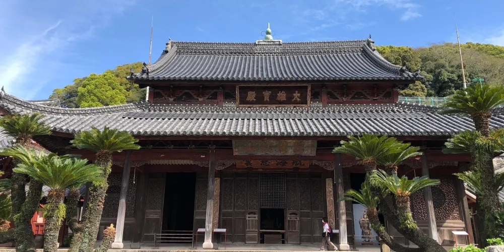 相當於寺院正殿的大雄寶殿是由中國的匠人用從中國運來的材料建造而成的,柱子和橫樑上雕刻了人物、鳥獸、鮮花等模樣,是中國南方建築的代表作,被列為日本的國家重要文化財產。