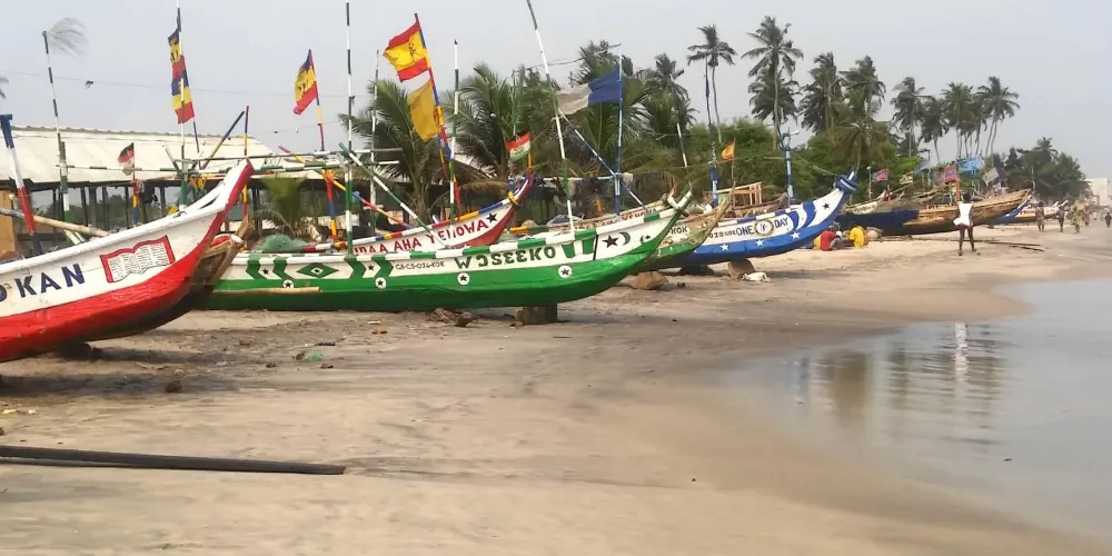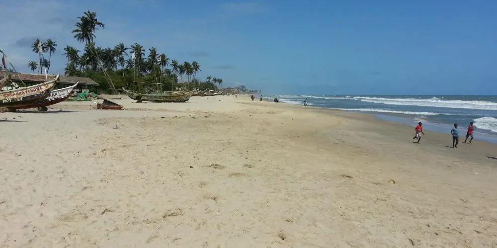 科克羅比特海灘位於加納首都阿克拉以西約30公里,是休閒海濱聖地。沙灘呈淺金色,海水清澈平緩,沿岸棕櫚樹與木麻黃樹形成天然遮陽區,適合鋪毯野餐或觀海。海灘北側分佈著多家家庭經營的海鮮餐館,推薦嘗試Grilled Tilapia(烤羅非魚)配Kenkey(發酵玉米麵團)。海灘上有租借衝浪板和獨木舟的服務,適合喜歡水上活動的遊客。南端設有付費淋浴間和置物櫃,方便長時間停留。當地漁民常在清晨收網,遊客可圍觀魚市交易或參與討價還價,體驗市井生活。建議遊客攜帶防曬用品,並注意海灘安全標識,以確保愉快的旅行體驗。