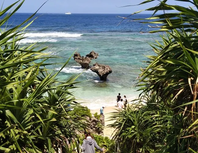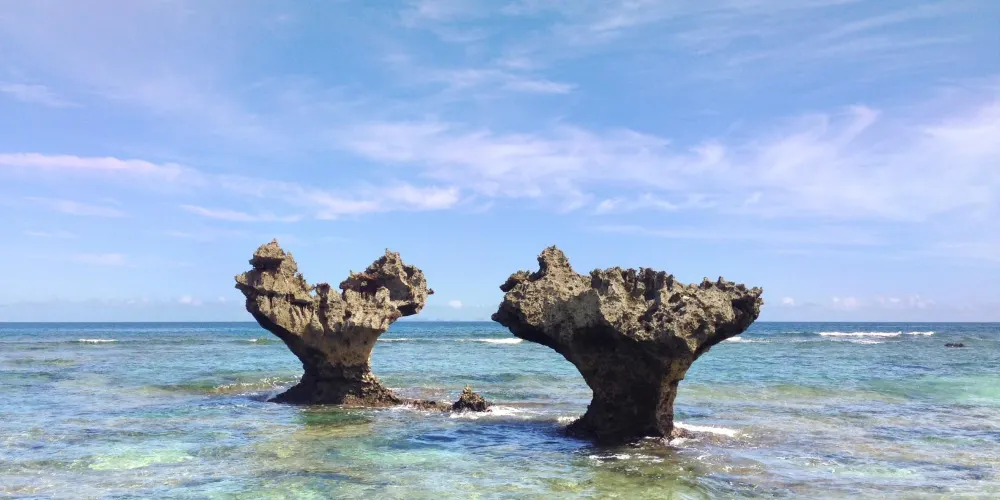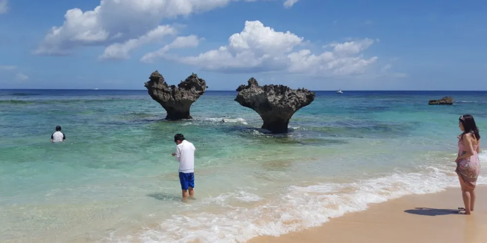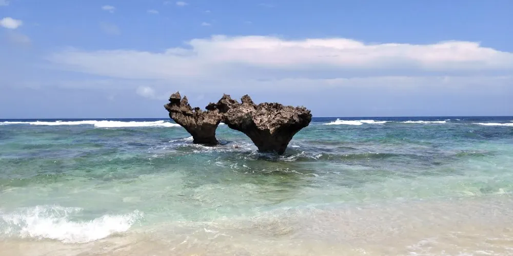 位於古宇利島東側的TI-NU海灘,因曾作為Arashi嵐廣告中的背景場景而人氣大增。最著名的便是兩座自然形成的心形珊瑚礁岩石,也是古宇利島又被稱為“戀島”的原因,很多情侶來此拍照留念。