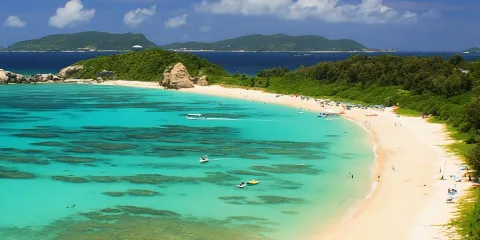 位於古宇利島東側的TI-NU海灘,因曾作為Arashi嵐廣告中的背景場景而人氣大增。最著名的便是兩座自然形成的心形珊瑚礁岩石,也是古宇利島又被稱為“戀島”的原因,很多情侶來此拍照留念。