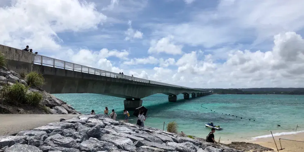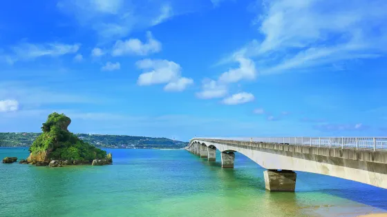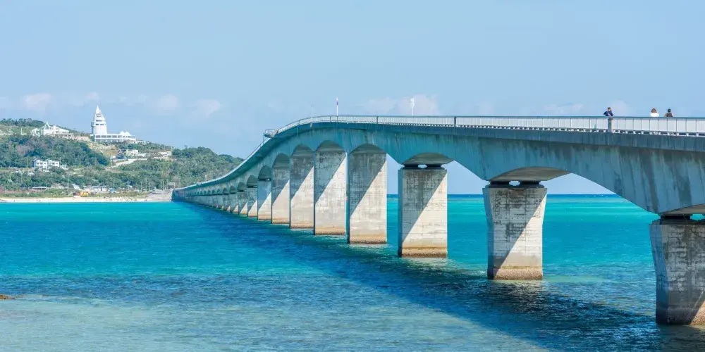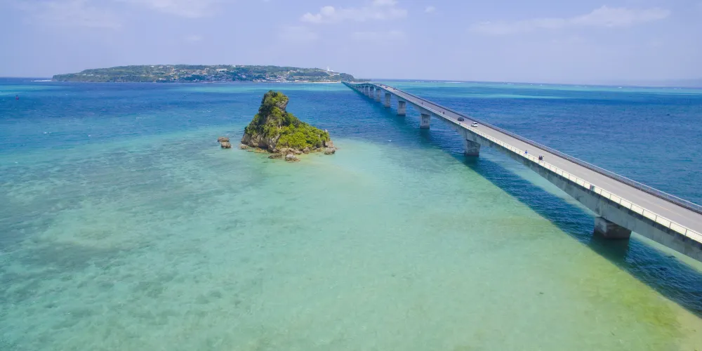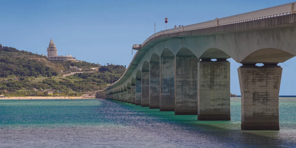 位於古宇利島上的海洋塔高82米,周圍是由非常透明的藍色和翡翠綠組成的海洋,站在瞭望塔上可將一望古宇利大橋和周邊的美麗海域。