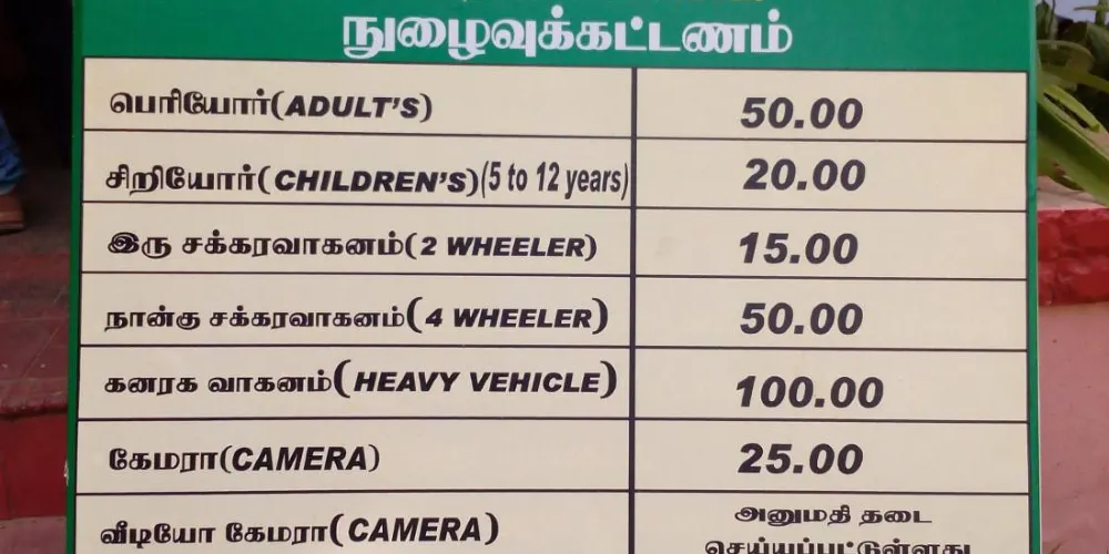 Kovai Kutralam Water Falls Entry Fee Counter
