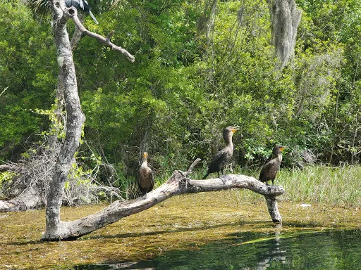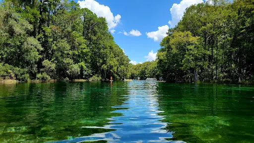 Rainbow Springs State Park 是一處以原始泉水和純淨自然景觀聞名的州立公園。這裡的核心是 Rainbow Springs —— 佛羅裡達州流量第四大的泉眼群,從地下含水層不斷湧出清澈碧藍的淡水,形成了涓涓細流的 Rainbow River,河水常年溫潤透明,是泳客、浮潛愛好者和劃槳者的理想之地。公園不僅有吸引人的自然泉眼,還有蜿蜒的步道、鬱鬱蔥蔥的森林和豐富的野生動植物,常見鳥類、龜類、鱷魚和各種水生生物點綴其間,適合健行、觀鳥和野外探險。週邊還保留著部分歷史遺跡,如曾經的熱帶花園和人造瀑布——這些都是上世紀中期作為私人旅遊景點遺留下來的文化景觀。除了自然景觀外,公園還提供豐富的活動設施,包括野餐區、露營地、皮划艇與獨木舟租賃點,以及適合家庭或團體的聚會場所。遊客可以沿著河道漂流、在岸邊坐著觀景,或漫步於古老的花園路徑,充分體驗這片兼俱生態與歷史魅力的戶外勝地。