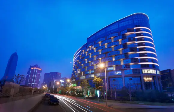 蓮花上供奉著無相大佛,契合了《金剛經》「不可以身相得見如來」之意。夜間時分,更是虛無縹緲,如夢似幻,七彩變幻的燈光,讓人恍如置身天宮幻境,重現了佛經中「蓮花上有無量億光」的迷人景象。
