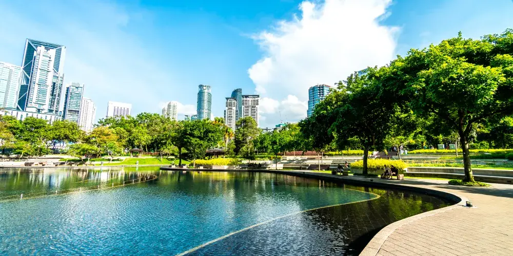 吉隆坡城中城公園位於馬來西亞首都的市中心,是一片綠意盎然的城市綠洲。公園佔地約50英畝,毗鄰標誌性的雙子星大樓,是市民和遊客放鬆身心的理想場所。公園設計融合了自然景觀與現代城市元素,擁有人工湖、步道和豐富的植被。